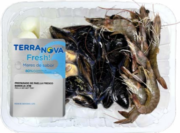Presentación: Mezcla equilibrada de mariscos y pescados para paella tradicional. Envasado MAP para conservar frescura, color y propiedades organolépticas.